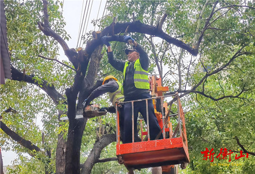 近日,随着我县城乡治理标准化工作的不断推进,县园林绿化所组织工人修剪城区行道树,消除安全隐患。