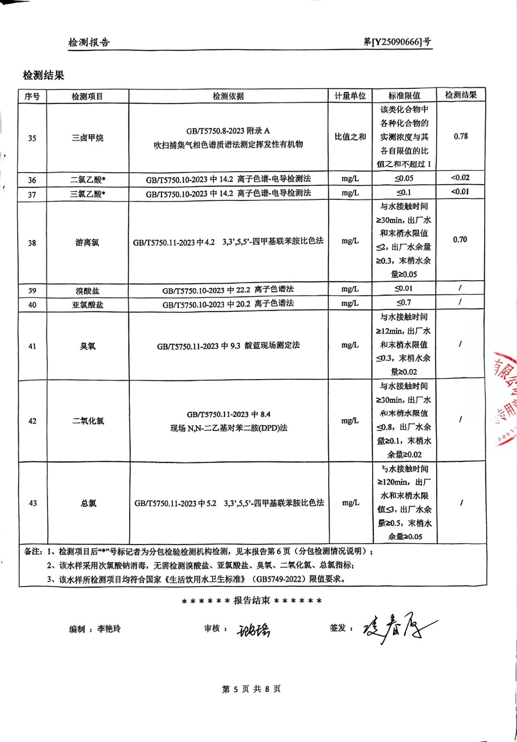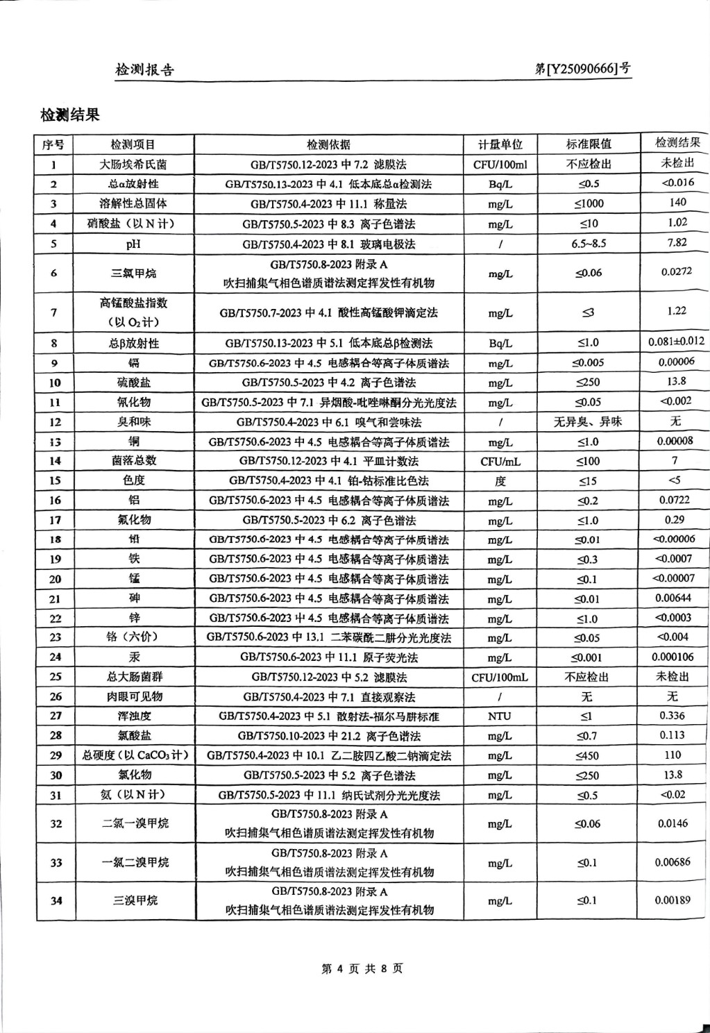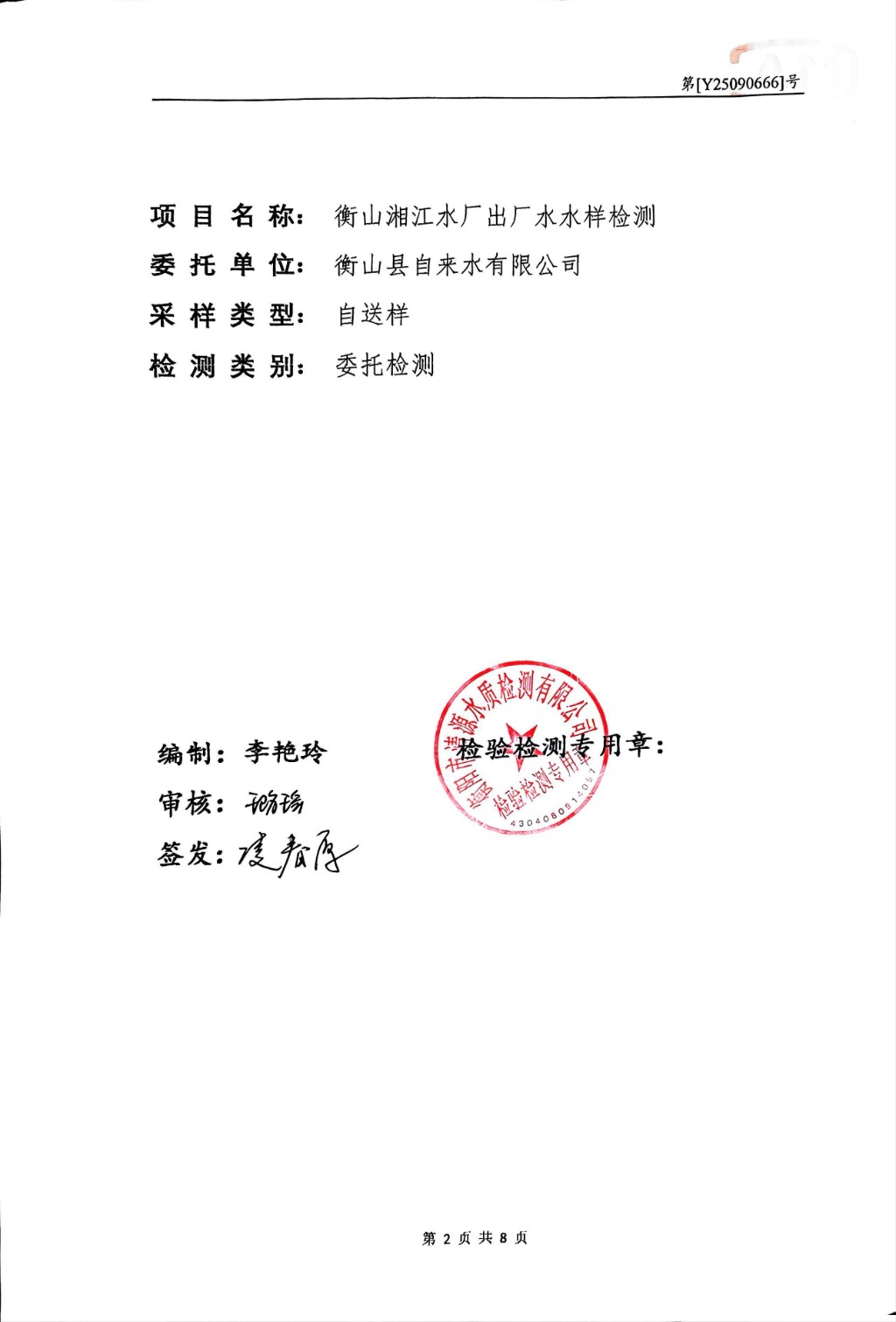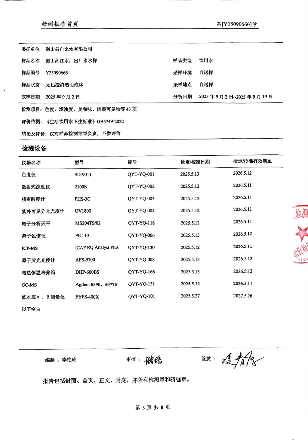 提高服务质量、保障供水安全(2025年9月水质检测报告)