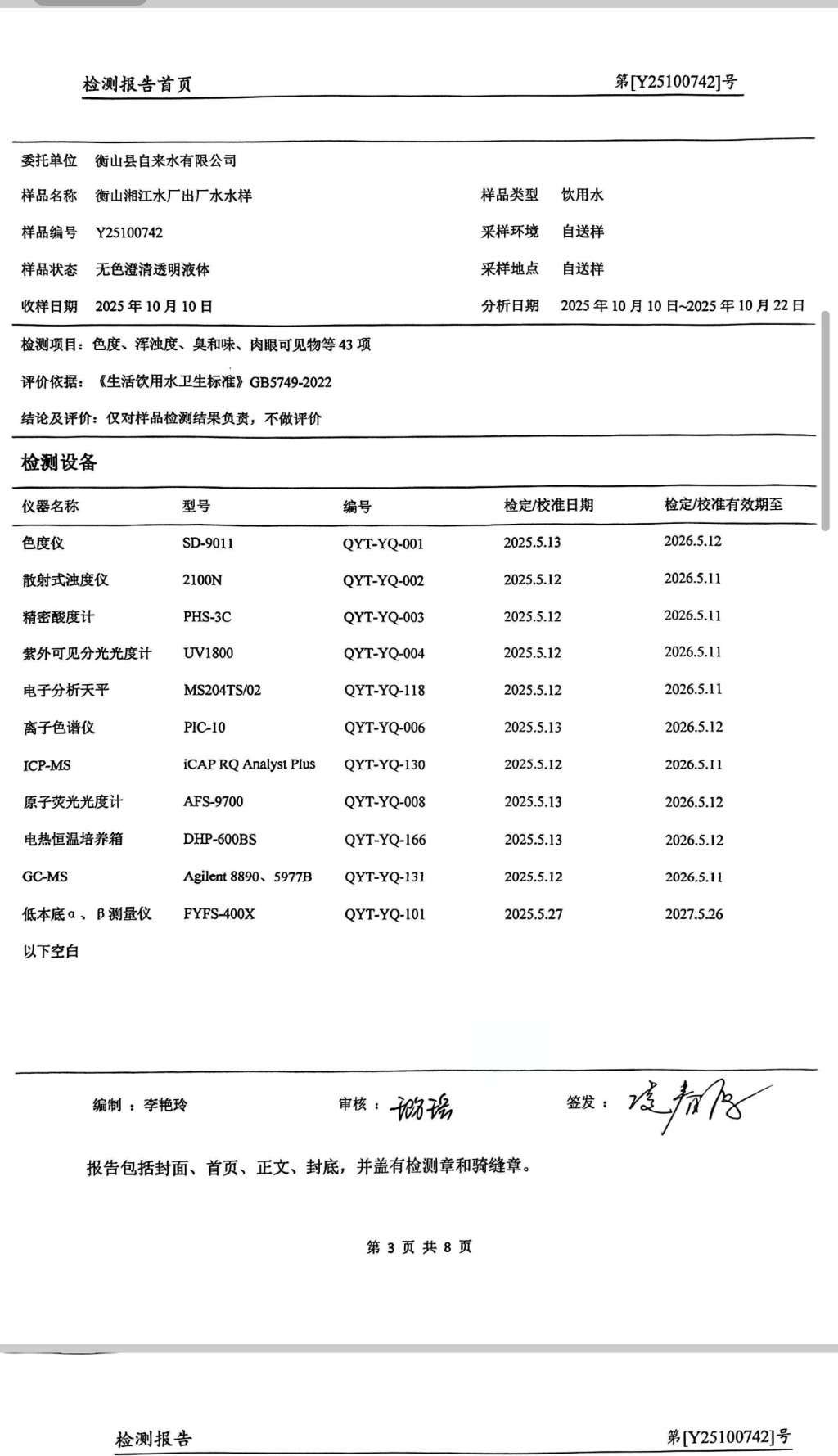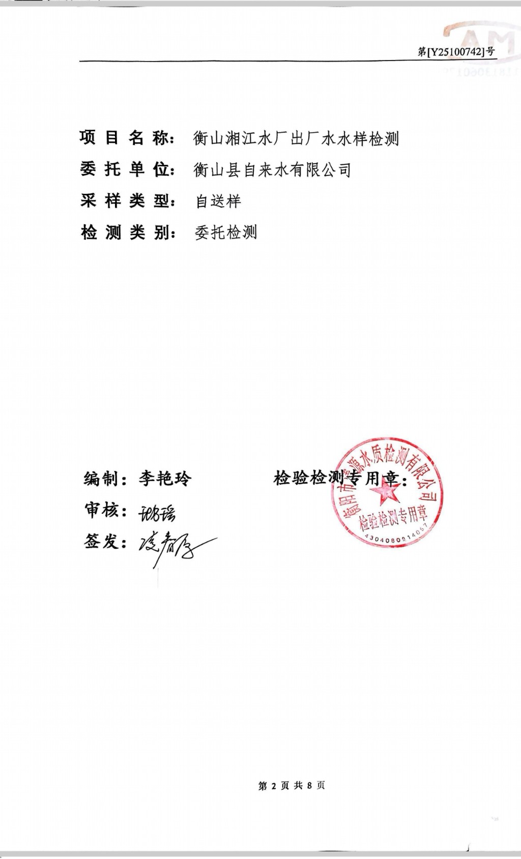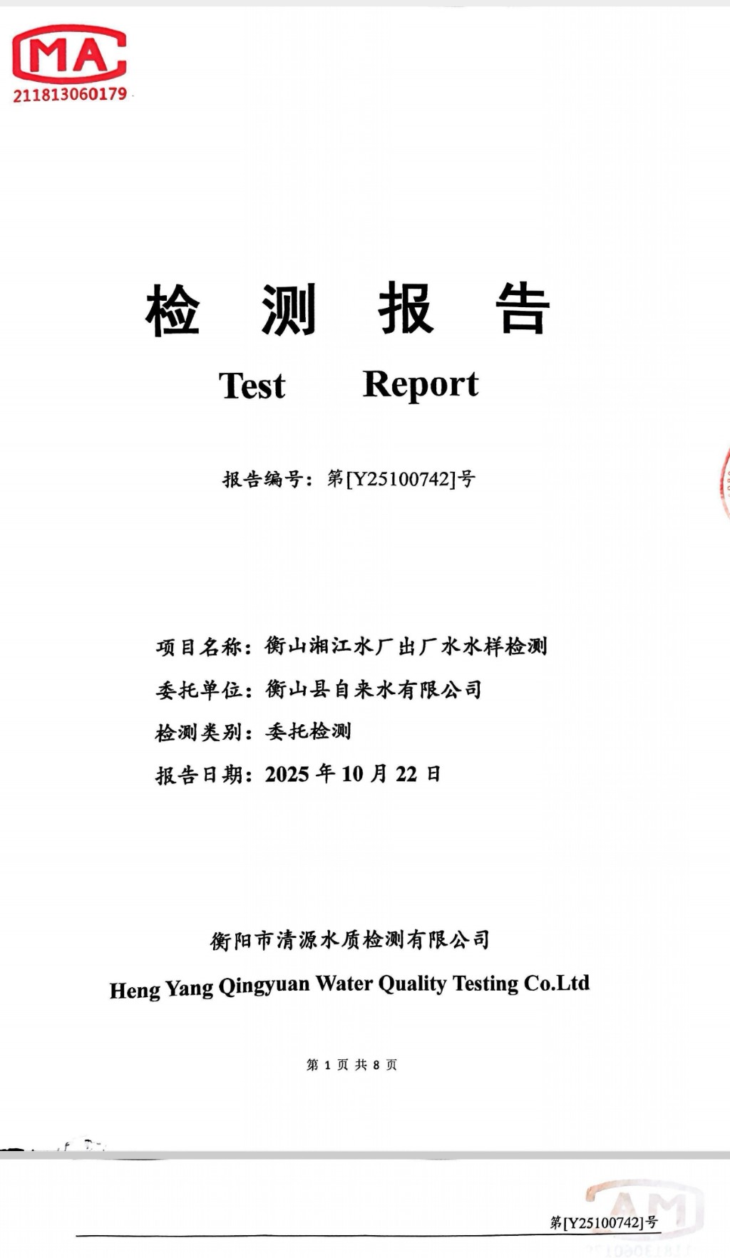 提高服务质量、保障供水安全(2025年10月水质检测报告)
