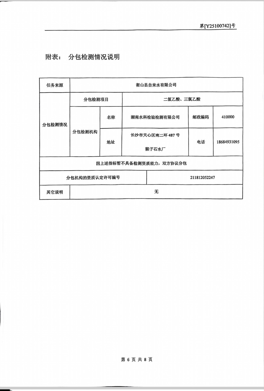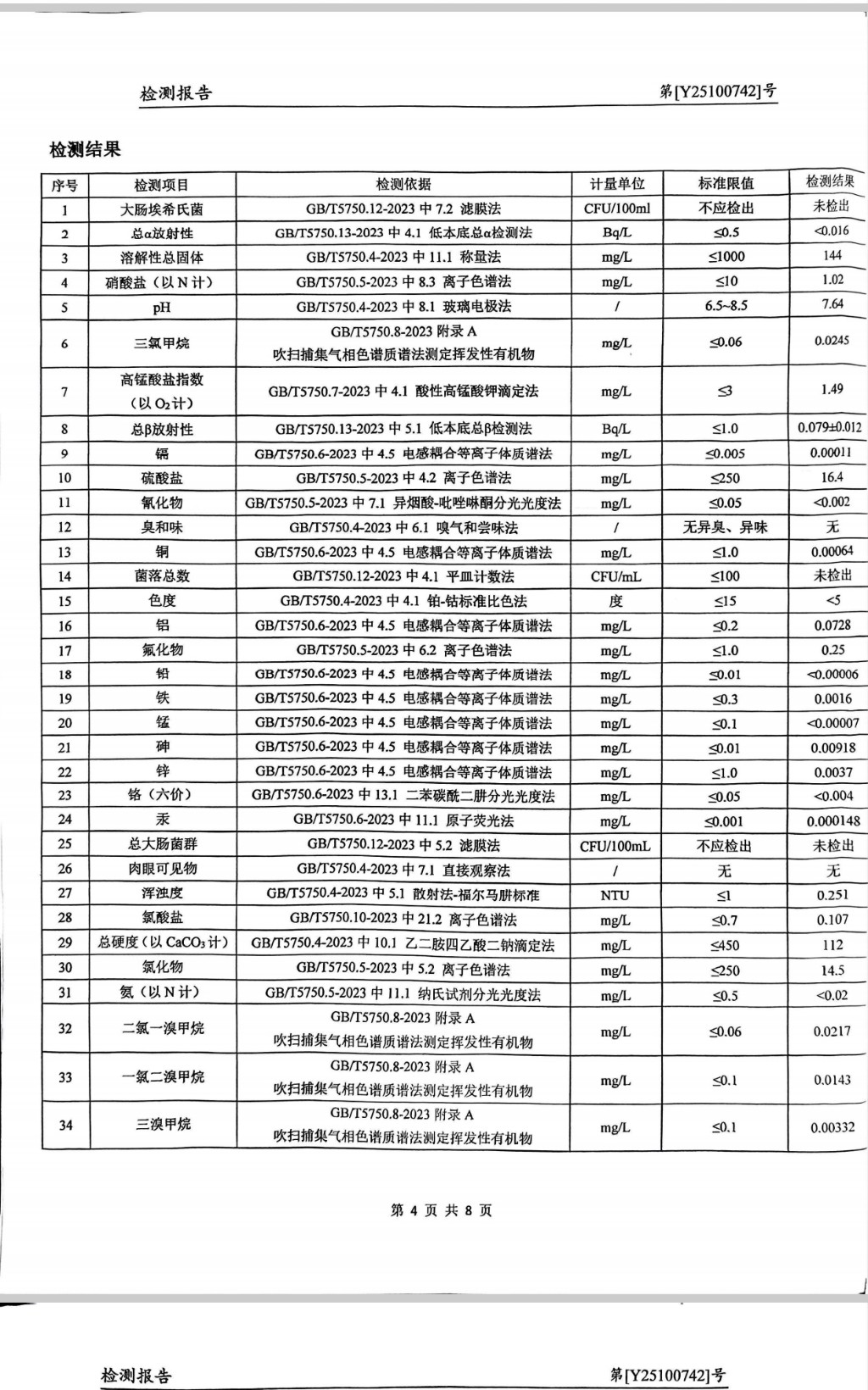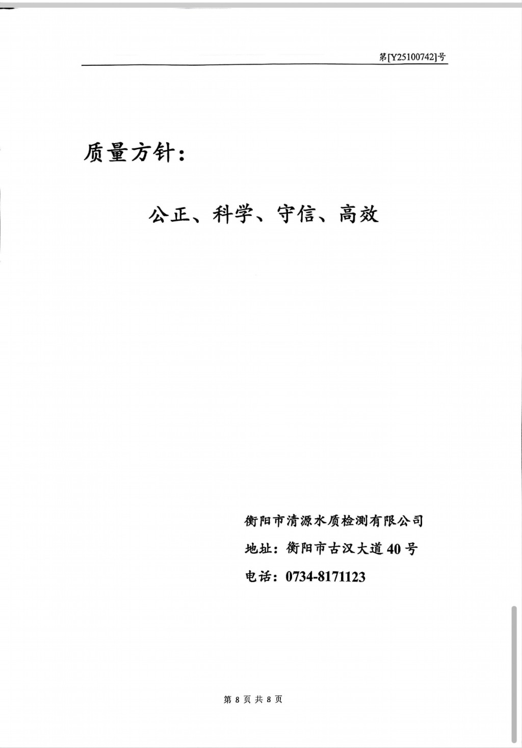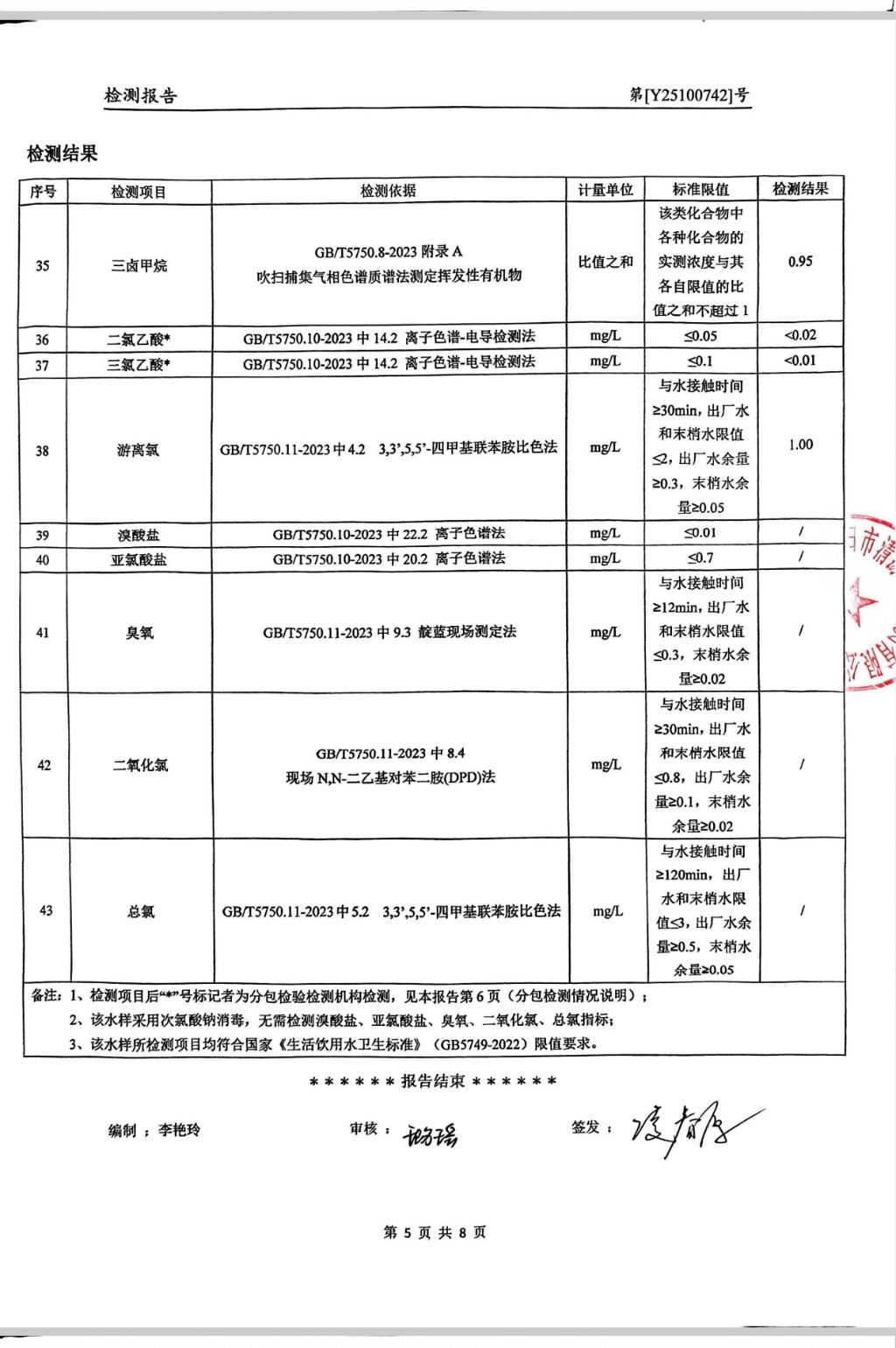 提高服务质量、保障供水安全(2025年10月水质检测报告)