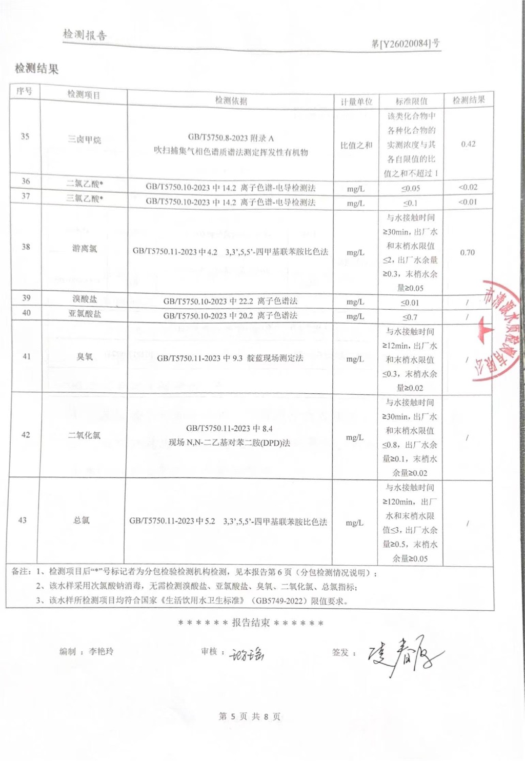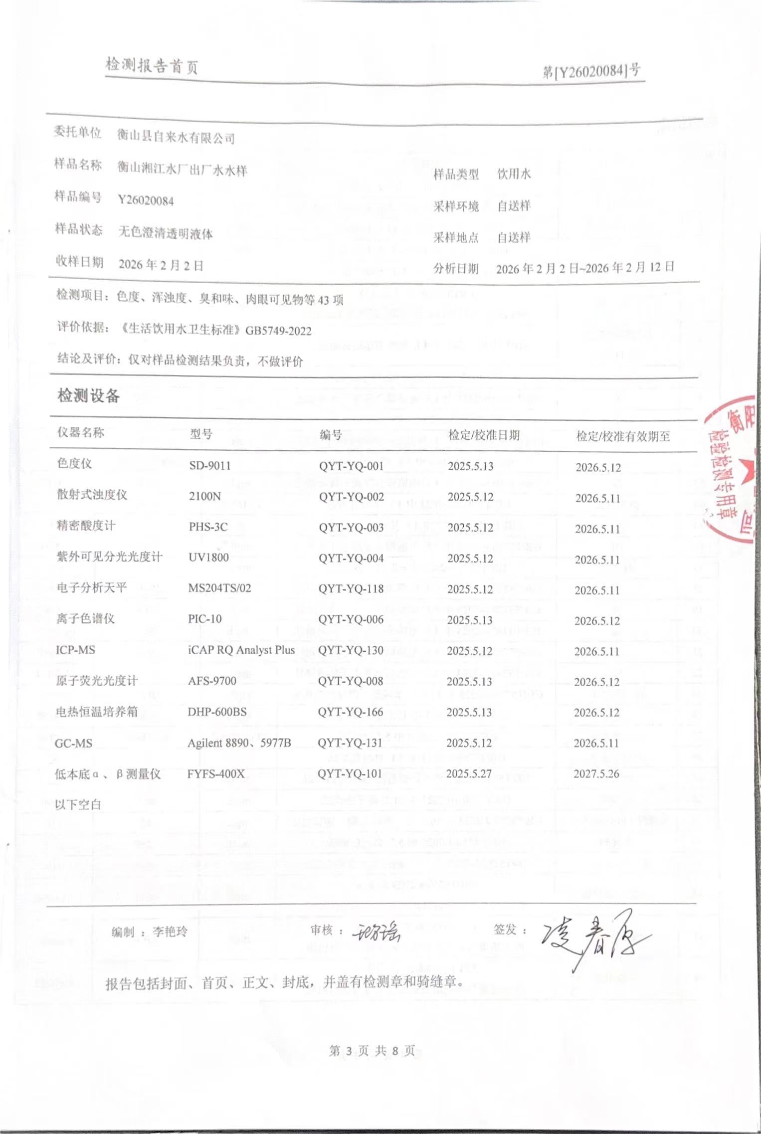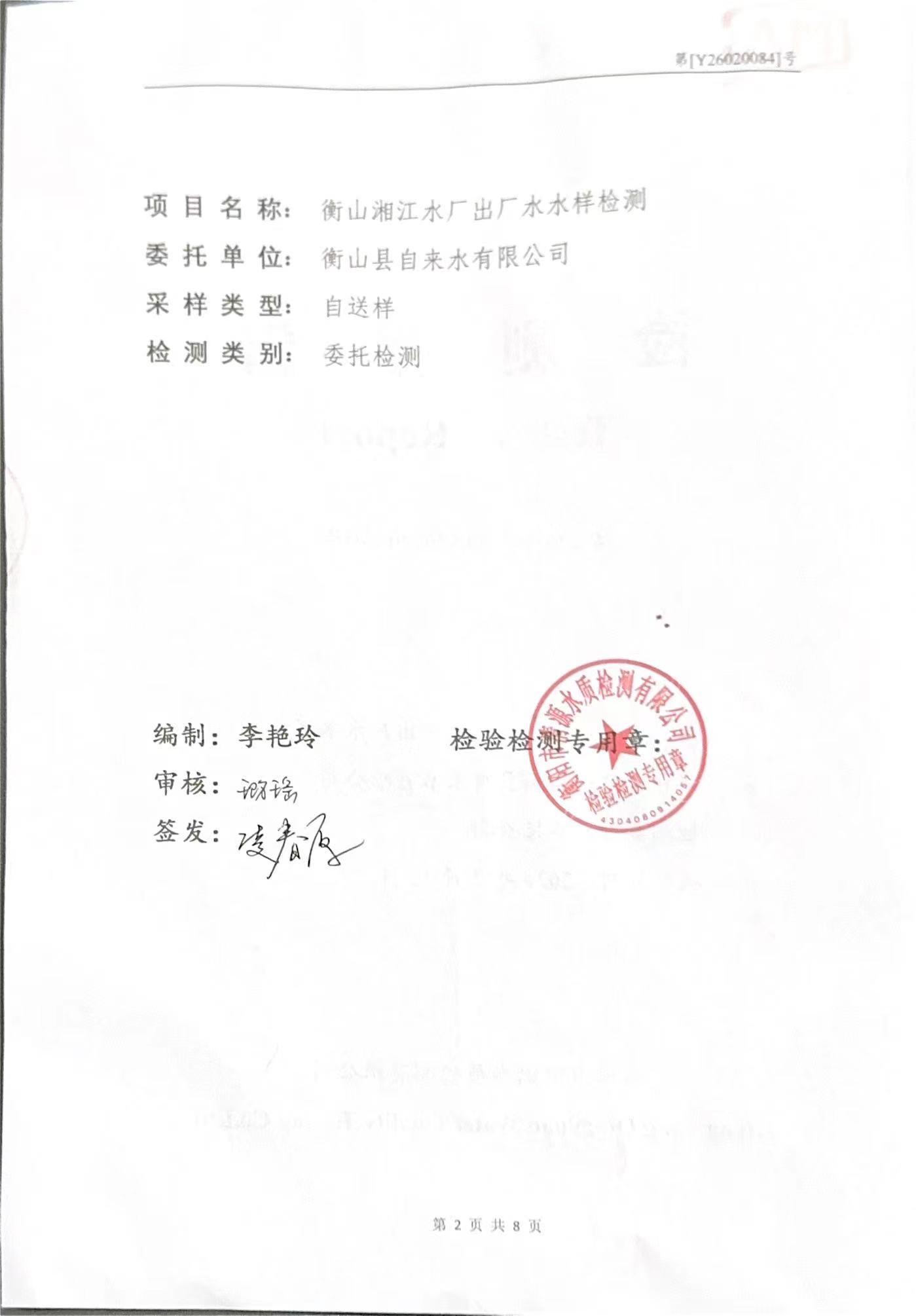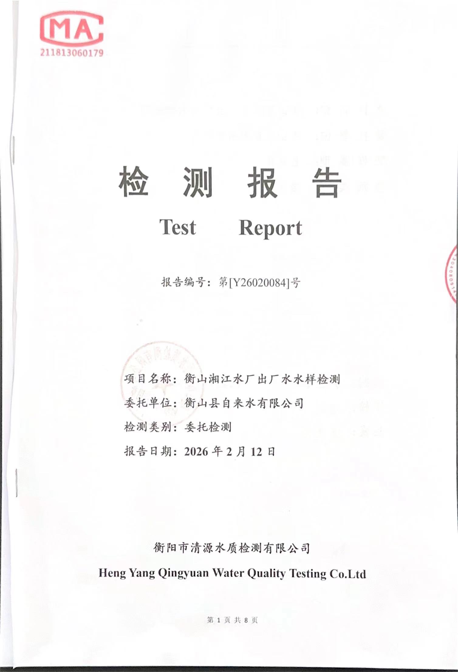 提高服务质量、保障供水安全(2026年2月水质检测报告)